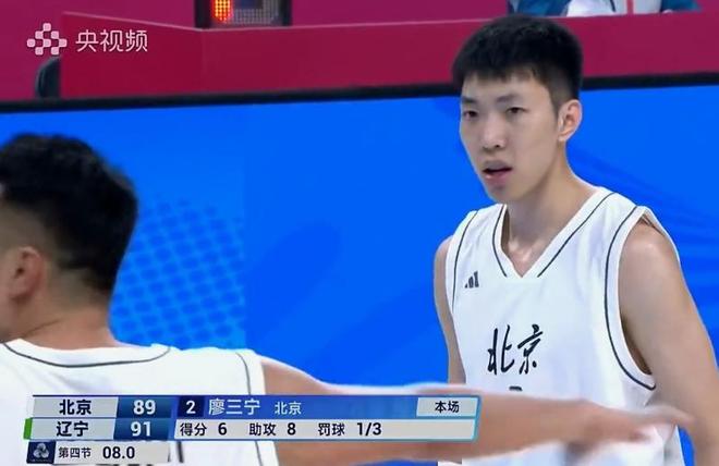 第四节最后3分钟,高诗岩、原帅连中2记三分,翟晓川给出三分回应双方比分再度打平,关键时刻李晓旭中投得手辽宁反超,高强度的8人轮转作战,北京队有些体能透支,连续出现2次失误,1分32秒,翟晓川再中三分,一回合后原帅三分回敬,辽宁继续手握2分领先,比赛最后8秒,低迷了一整场的廖三宁获得转换机会制造2罚,但,只进一球。