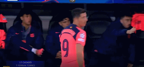 第60分钟,巴萨换人,莱万、奥尔莫替补登场