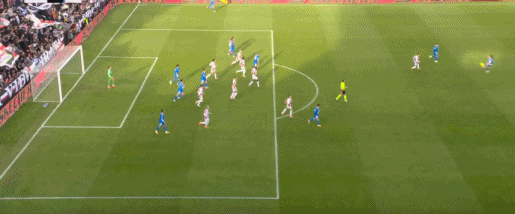第17分钟,居莱尔禁区内倒地,随后裁判示意此前越位